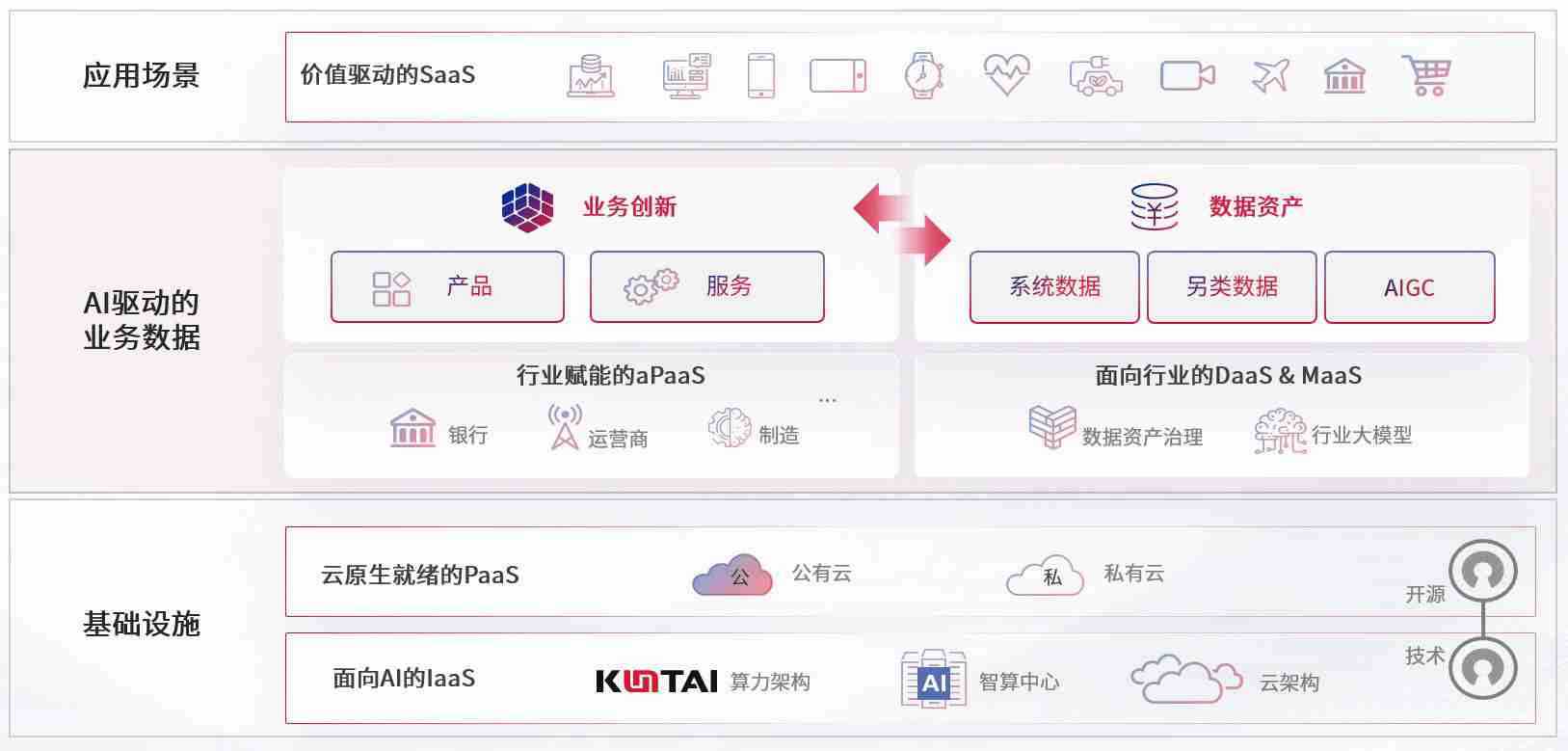 数字时代,,,,围绕企业数字化转型的关键要素,,,,欧博代理平台数码开创性的提出数云融合战略和技术体系框架,,,,着力在云原生、、数字原生、、、、AI原生和信创产业上架构产品和服务能力,,为处在不同数字化转型阶段的快消零售、、、、汽车、、金融、、、医疗、、、、政企、、、、教育、、、运营商等行业客户提供泛在的敏捷IT能力和融合的数据驱动能力,,,,构建跨界融合创新的数字业务场景和新业务模式,,助力企业级客户建立面向未来的核心能力和竞争优势,,,全面推动社会的数字化、、、、智能化转型升级。。